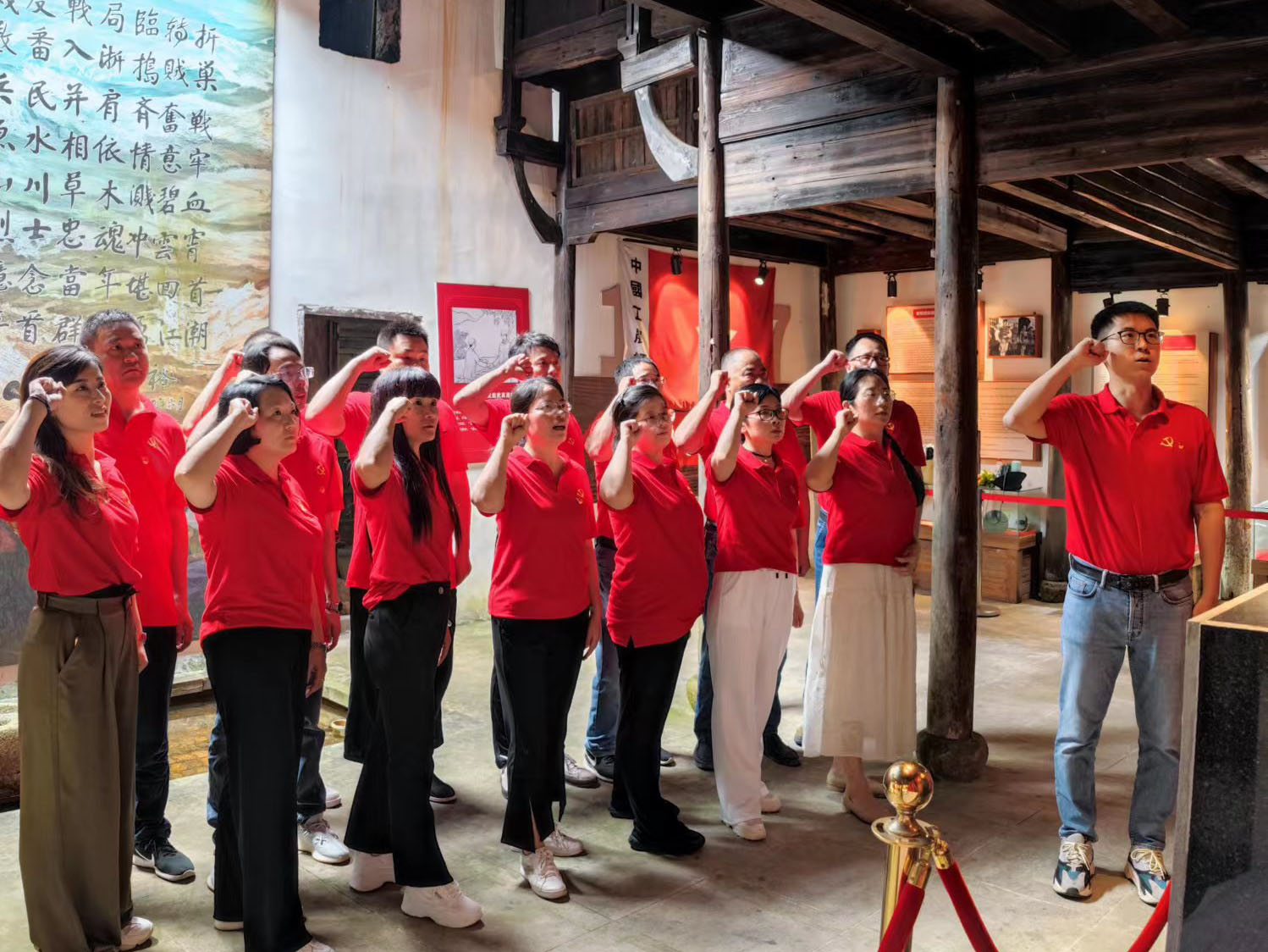 ? ? 金廈黨總支的黨員們?cè)邳h支部書(shū)記傅融的帶領(lǐng)下參觀了銀坑村粟裕將軍紀(jì)念館,感悟革命初心,重溫入黨誓詞。
